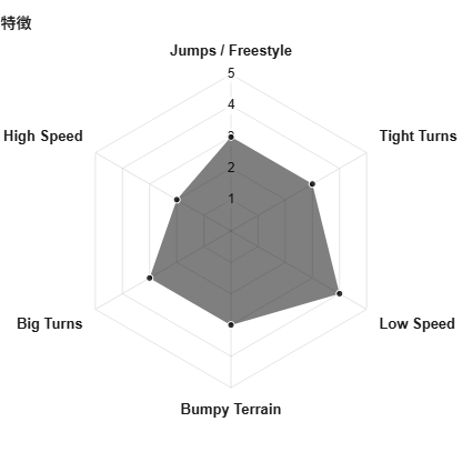 じゃじゃ馬的存在でタイトなテレインや中速域重視の個性派 SPOON FISH。兄貴分的なレングスの"SPOON FISH 152" は弟と違いマイルドなフィーリング。サーフィーなライディングフィールを継承したまま、テーパーを少なくサイドカーブを大きくして中高速でもしっかりと攻め込める実力派だ。